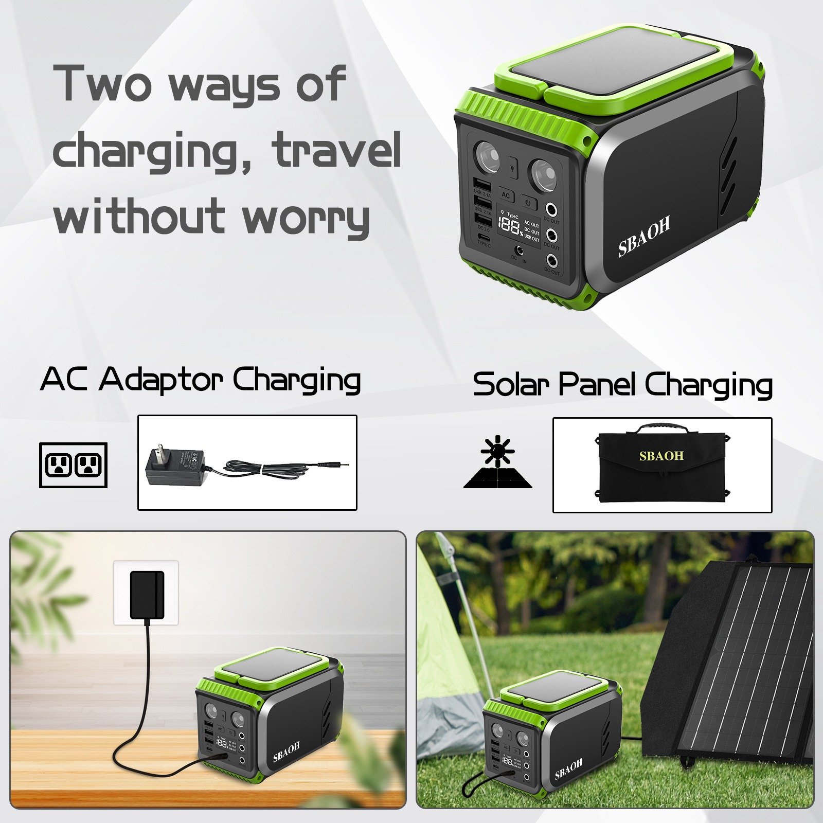 110V Camping Power Station,148Wh 200 W Solar Generator,40000mAh