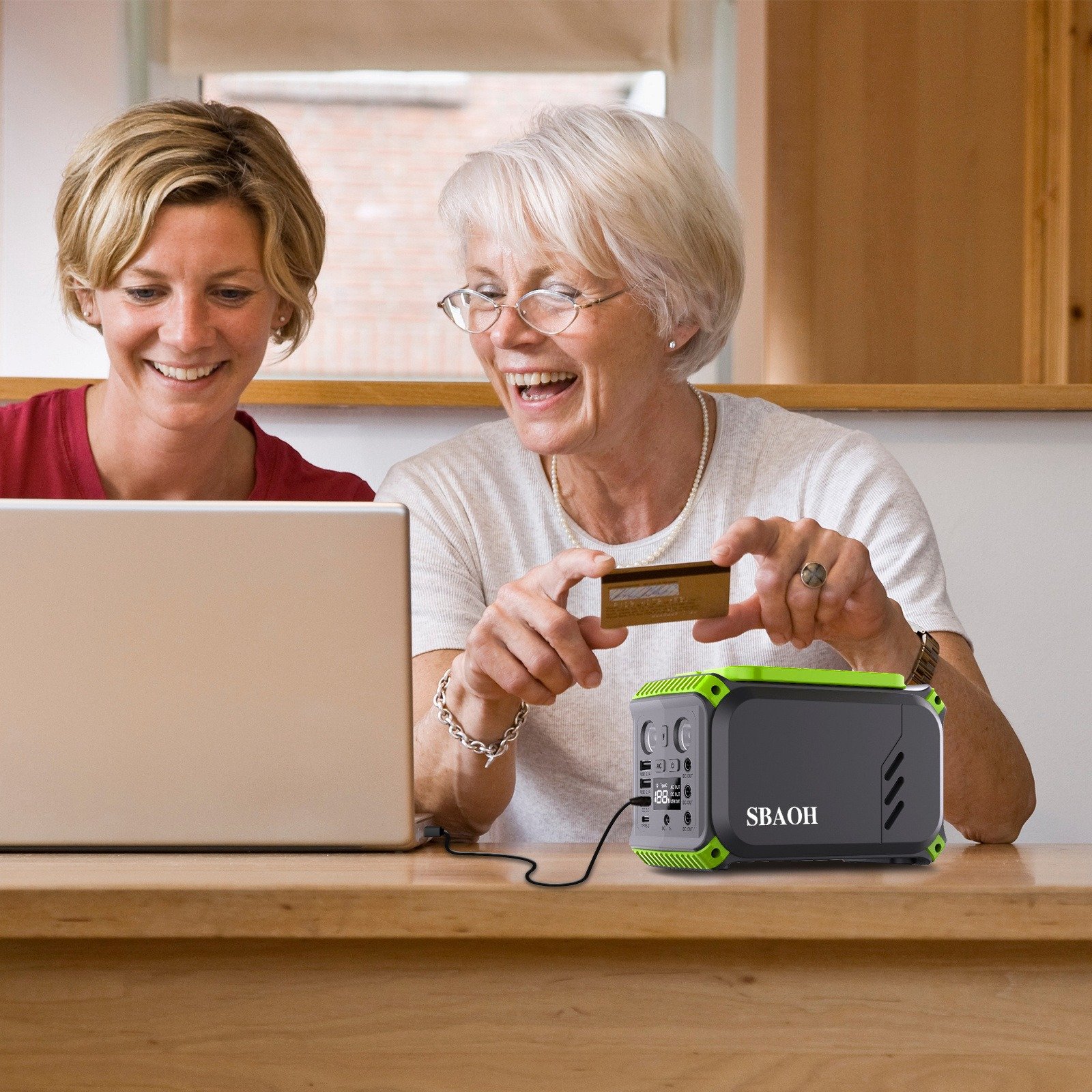 A powerful 40000mAh portable power station with AC outlets, the weight of only 3.3 lbs with dimensions of 6.7 x 4.1 x 4.5 inch / 17 x 10.5 x 11.5 cm. Equipped with an easy-carry handle, very convenient for your mini refrigerators, CPAP machines, etc, during off-grid camping, vacations, travels, road trips, hunting adventures, or emergency power outages.