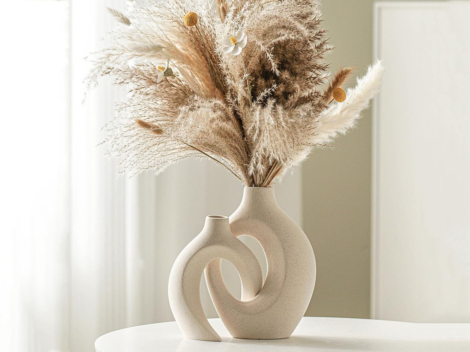 🌿 Snuggle Hollow Ceramic Vase Set of 2 – Nordic Modern Boho Home Décor